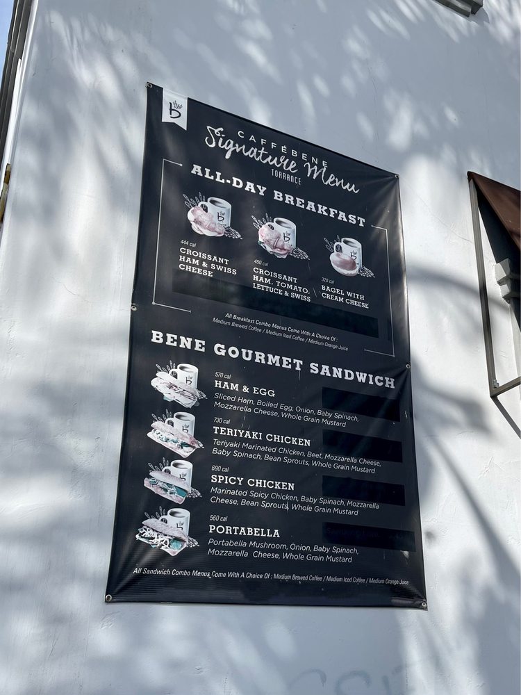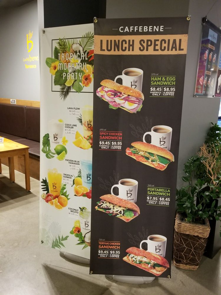 Caffe Bene in Torrance, CA offers a diverse menu of desserts, coffee, tea, and sandwiches. The restaurant provides various utilities such as takeout, reservations, delivery, and free Wi-Fi. Customers praise the spacious and comfortable environment, ideal for studying or working. The coffee is described as decent and not overly sweet, with highlights including the multigrain latte and affogato. The menu also features pastries and sandwiches ranging from $10-$14. Service is friendly and accommodating, with a soothing ambiance created by classical music. Although parking may be a bit challenging, the overall experience at Caffe Bene is highly recommended for individuals looking for a relaxed and productive setting with quality beverages and snacks.